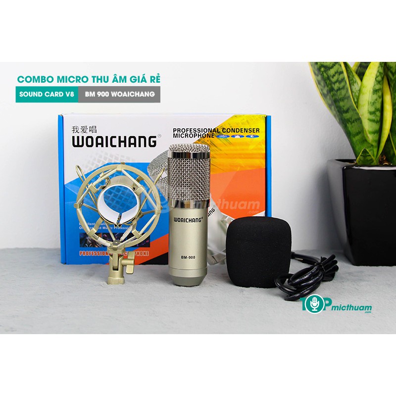 Combo bộ Mic Thu Âm, Hát Karaoke,Livestream online cực hay(Trọn Bộ Souncard V8,Bm900,kẹp bàn, màng lọc )