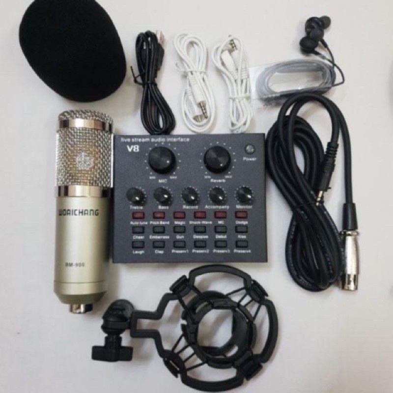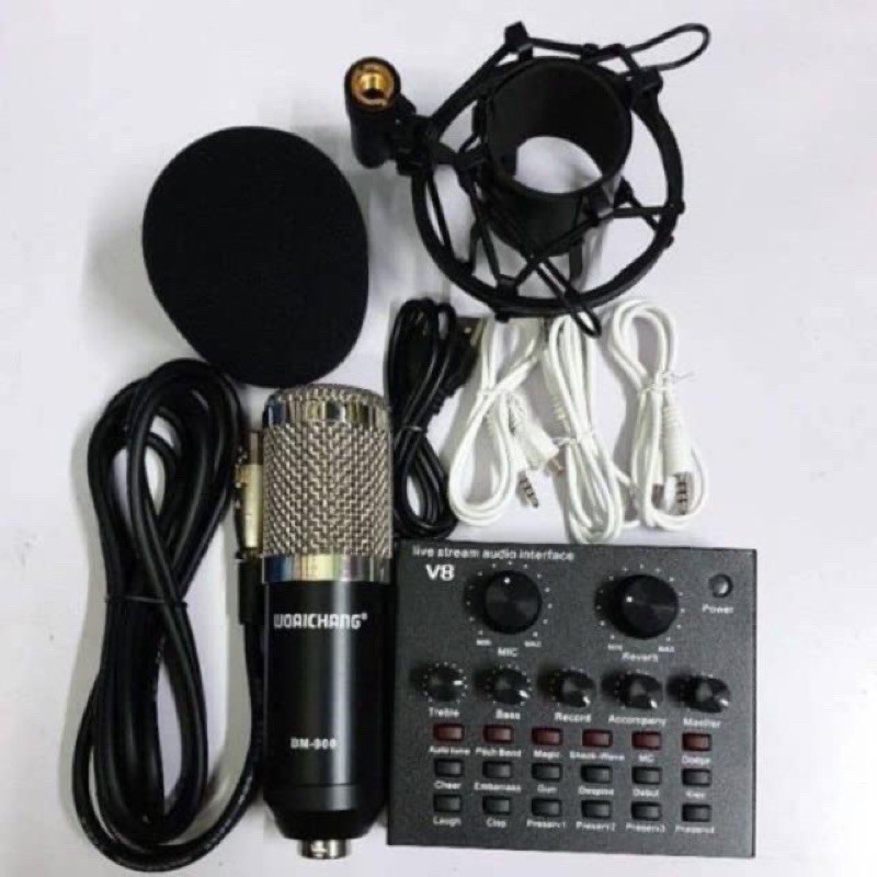 Combo bộ Mic Thu Âm, Hát Karaoke,Livestream online cực hay(Trọn Bộ Souncard V8,Bm900) -DC2164+3406