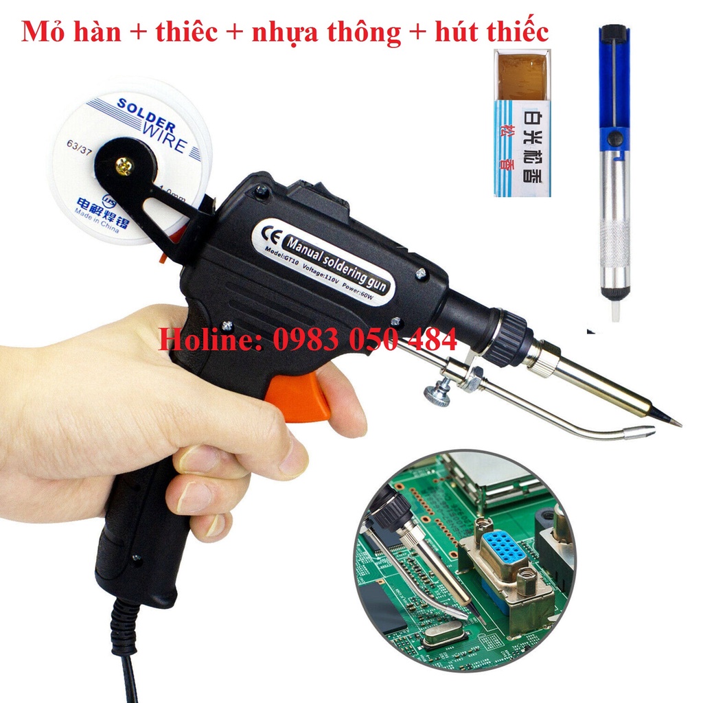Nhà cửa & Đời sống > Dụng cụ & Thiết bị tiện ích > Dụng cụ > Dụng cụ hàn điện || Combo bộ mỏ hàn đẩy thiếc tự động 60 cao cấp kèm thiếc, hút thiếc, nhựa thông mỏ hàn thiếcCòn hàng