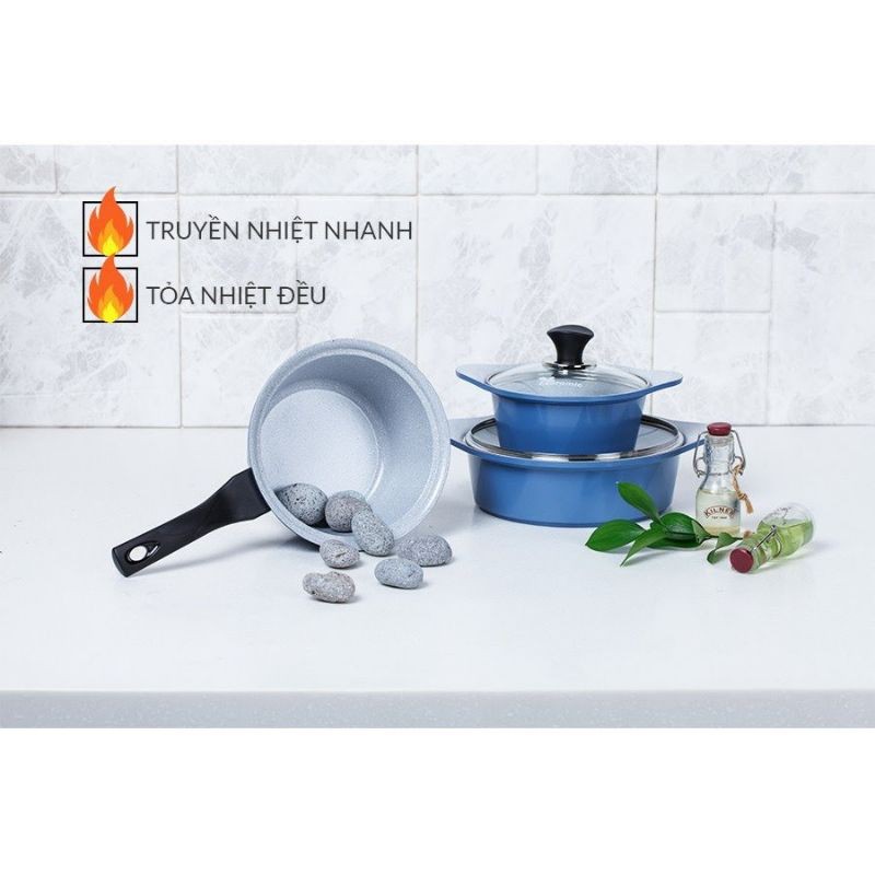 Combo bộ nồi chảo chống dính vân đá hàn quốc