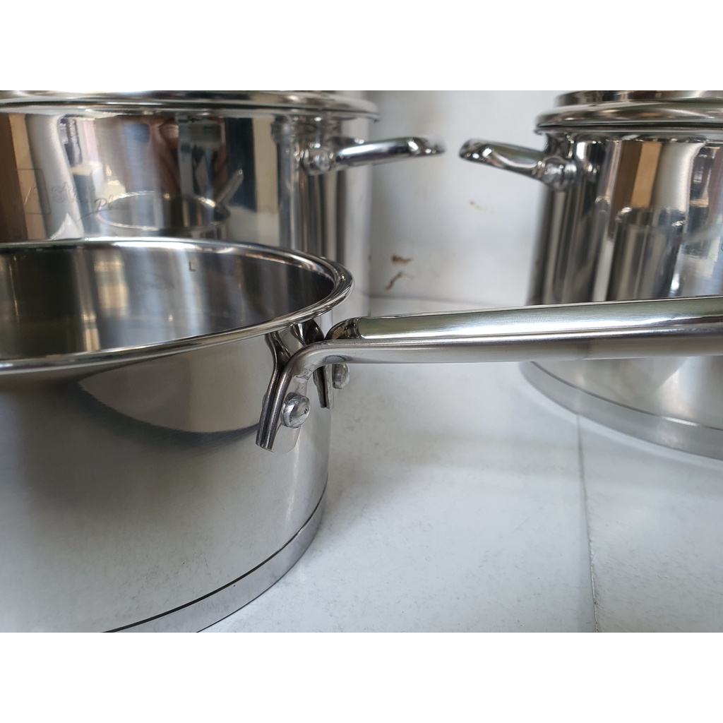- Đáy của nồi và chảo cấu tạo 3 lớp nên vừa tiết kiệm năng lượng khi sử dụng , vừa giảm thất thoát lượng vitamin trong quá trình nấu ăn.