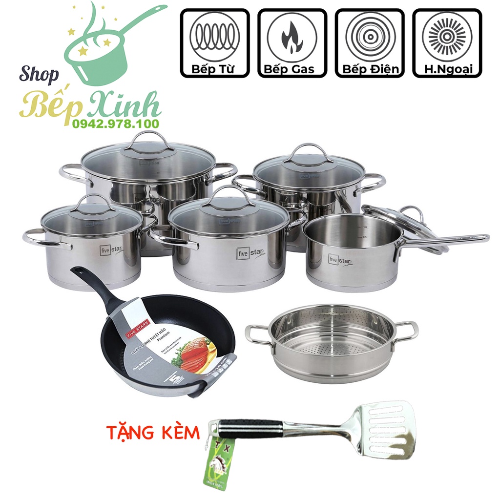 Nhà cửa & Đời sống > Dụng cụ nhà bếp > Nồi || Combo bộ nồi inox 304 và xửng chảo chống dính cao cấp FIVESTAR 7 món nắp kính 3 đáy dùng được bếp từ , hồng ngoại , gasCòn hàng