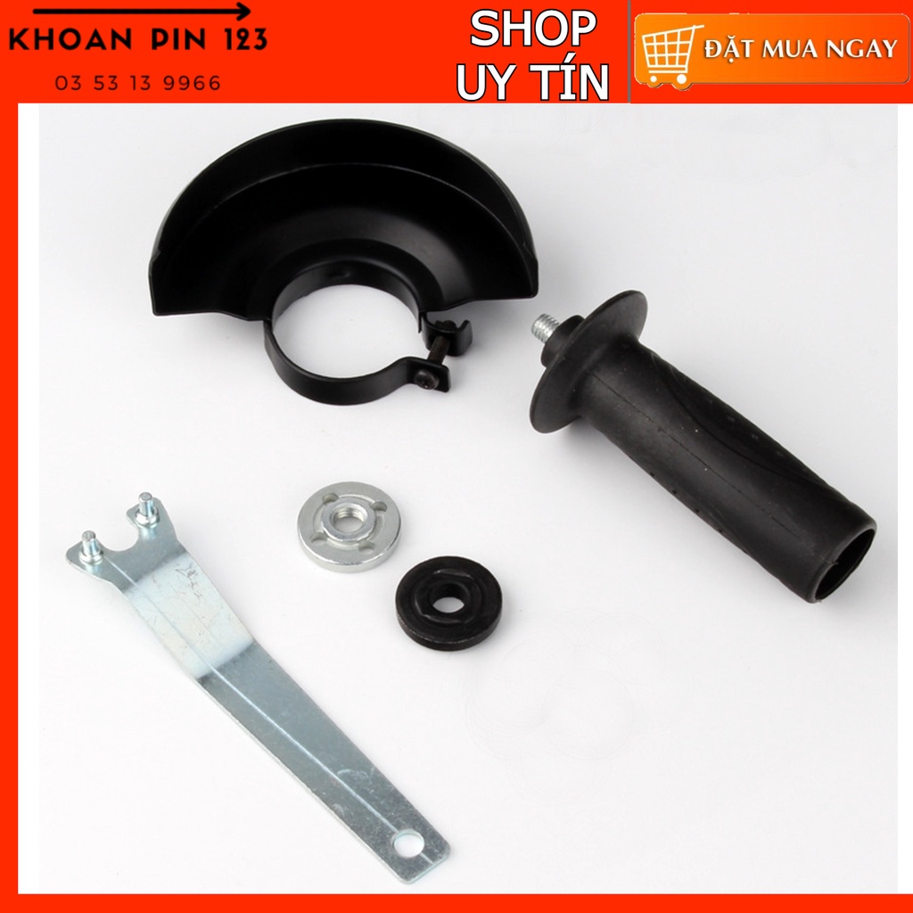 Combo bộ phụ kiện tay cầm phụ, cờ lê, tấm chắn an toàn và cặp mặt bích cho máy mài góc 100mm, máy mài con chuột