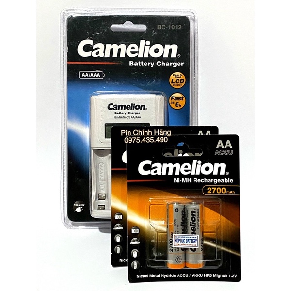 Combo Bộ Sạc AA AAA Camelion BC-1012 Có Màn Hình Kèm 4 Pin Sạc AA 2700 mAh Thế Hệ Mới