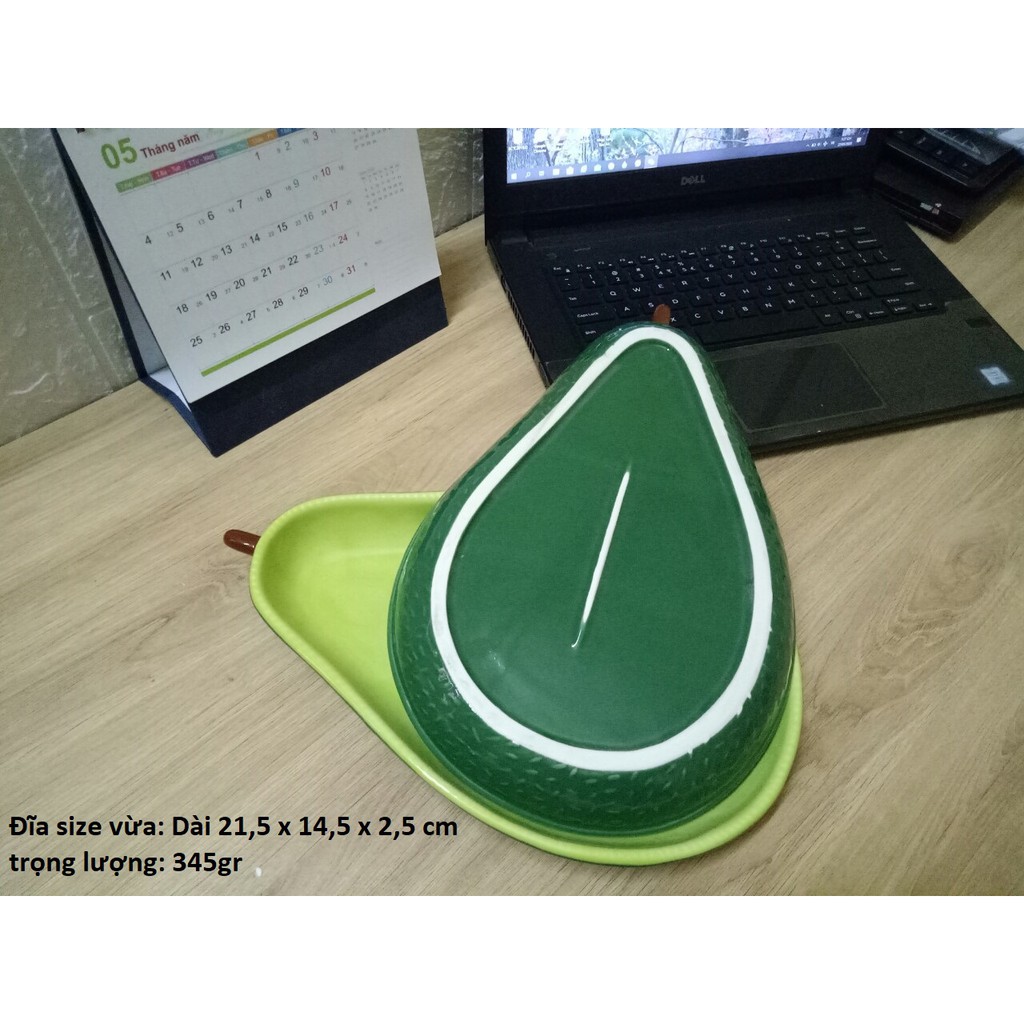 01 đĩa hình trái bơ cỡ vừa: 345g, kích thước 21,5 * 14,5 * 2,5 cm