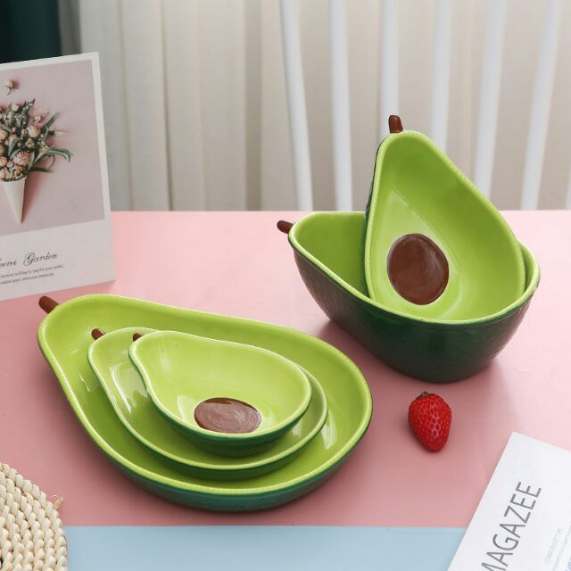 Nhà cửa & Đời sống > Bộ đồ bàn ăn > Dĩa || Combo bộ sản phẩm bát đĩa gốm sứ tráng men hình quả bơ cực đẹp gồm 5 chi tiếtCòn hàng