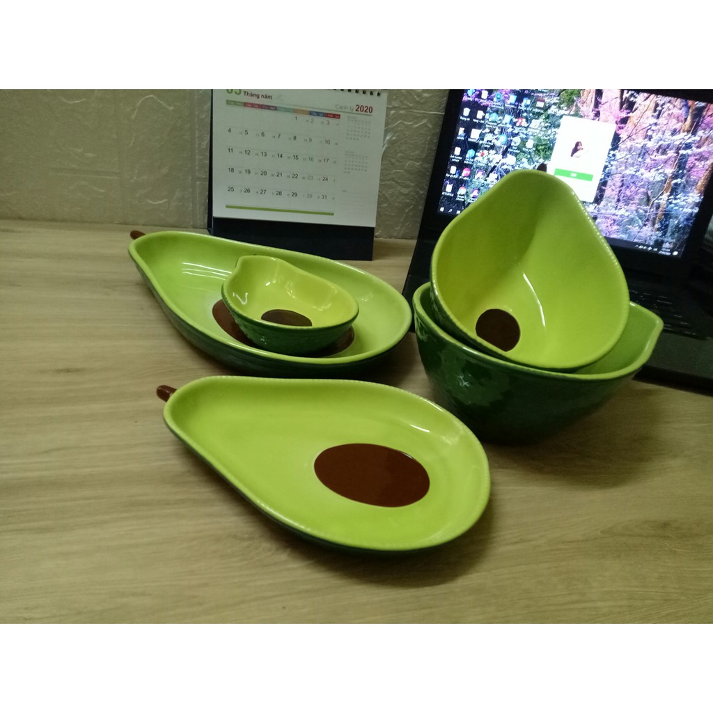Combo bộ sản phẩm bát đĩa gốm sứ tráng men hình quả bơ cực đẹp gồm 5 chi tiết