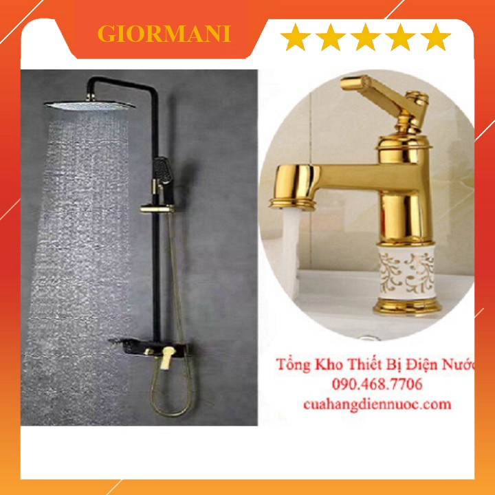 Nhà cửa & Đời sống > Đồ dùng phòng tắm > Vòi sen & vòi xịt vệ sinh || Combo bộ sen cây nón lạnh vàng đen kèm vòi chậu lavabo đính đá cao cấp SC02-SNL09Còn hàng