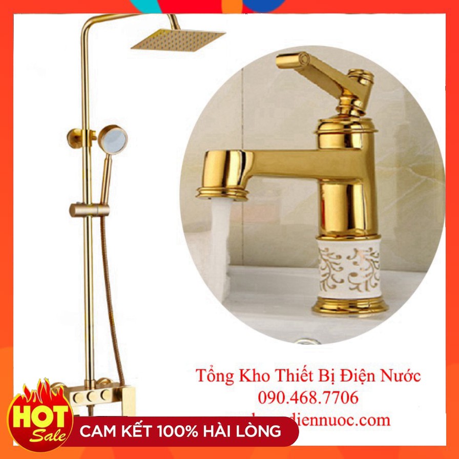 Nhà cửa & Đời sống > Đồ dùng phòng tắm > Vòi sen & vòi xịt vệ sinh || Combo bộ sen cây tắm GIORMANI vàng kèm vòi lavabo đính đá cao cấp SC05-SNL09Còn hàng