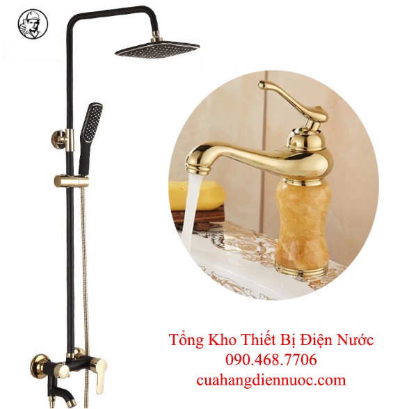 Combo bộ sen cây tắm kèm vòi chậu lavabo vàng đen cao cấp SC07-SNL23