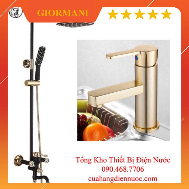 Combo bộ sen cây tắm nóng lạnh kèm vòi chậu lavabo vàng đen cao cấp
