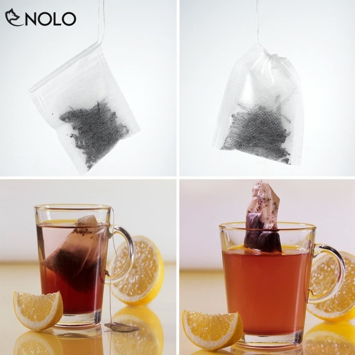 Xung quanh mép túi được hàn nhiệt chắc chắn. Ngoài ra, túi có thiết kế thêm dây buộc, giúp giữ trà hoặc gia vị bên trong không bị đổ ra ngoài trong quá trình chế biến