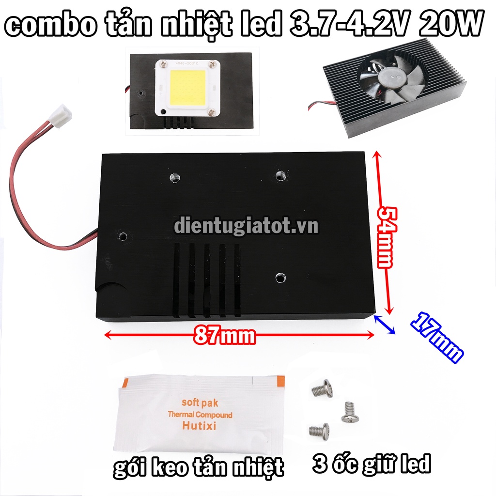 Combo bộ tản nhiệt cho led siêu sáng 3.7-4.2V 20W mà shop đang bán
