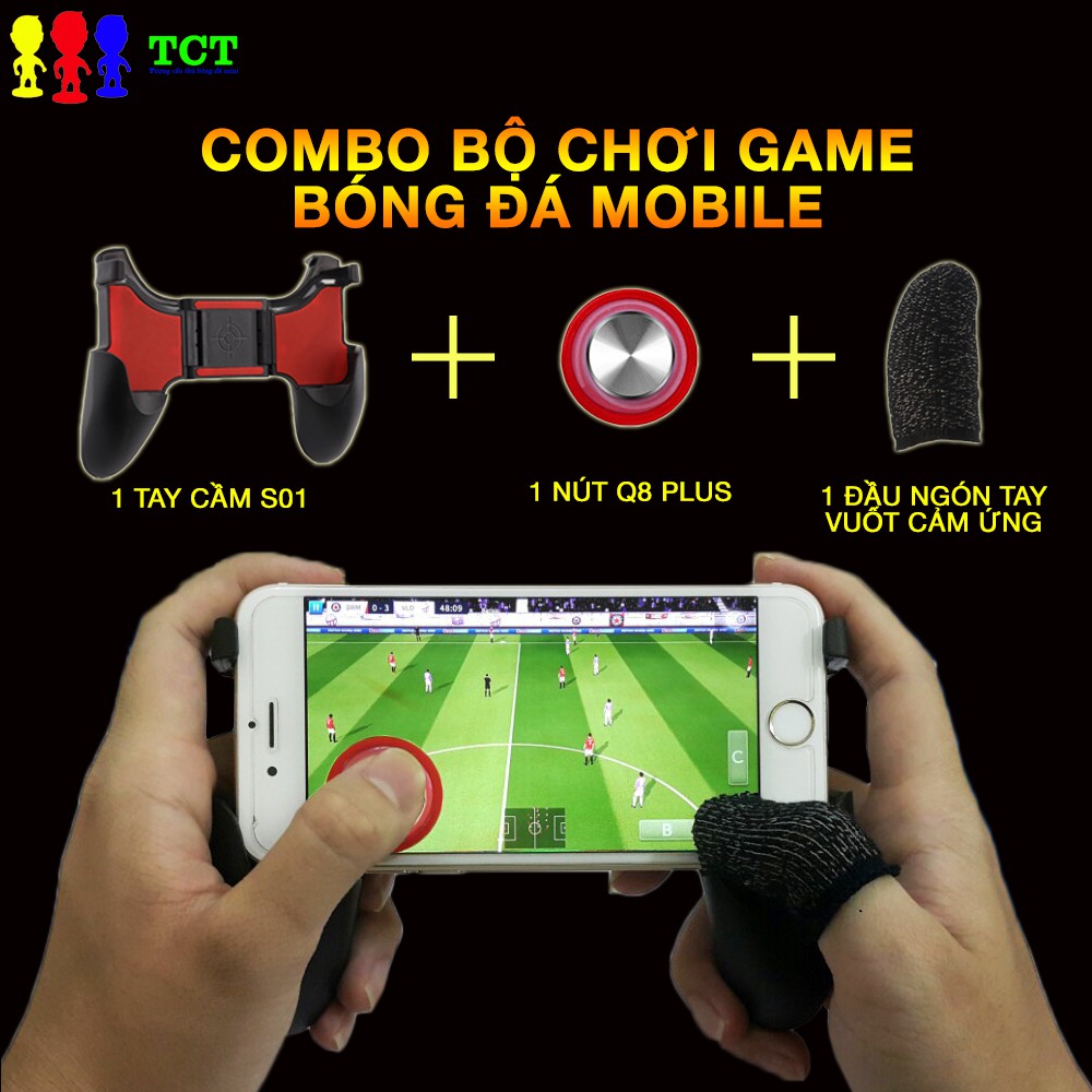 Combo bộ tay cầm + 1 nút di chuyển + 1 đầu ngón tay chơi game Dream Soccer, PES mobile, Fifa Moblie, bao gồm:A. 1 tay cầm S01
