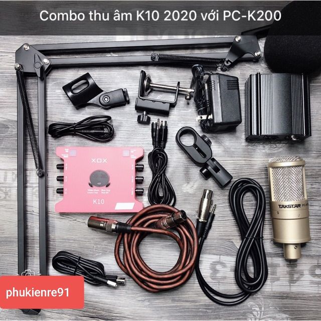 Combo bộ thu âm hát livestream mic PC K200 ,sound card K10 bản đặc biệt 2020 ,đầy đủ phụ kiện