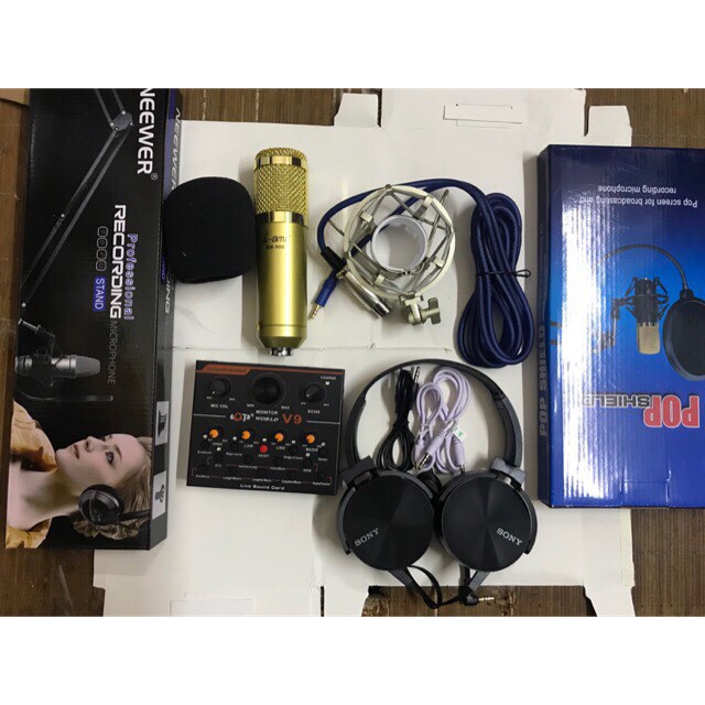 Thiết Bị Âm Thanh > Micro thu âm || COMBO bộ thu âm sound v9 Mic thu âm Ami bm900 full phụ kiệnCòn hàng
