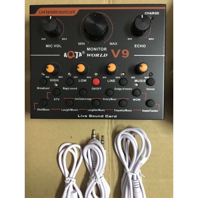 - soundcard v9 quốc tế tiếng anh kèm dây live dây lấy nhạc và dây sạc.