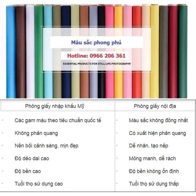 – 1 cuộn phông giấy 5m (tùy chọn màu)