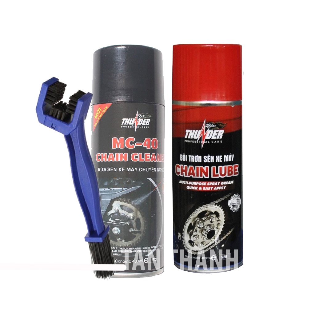 Bộ Combo Bôi trơn dưỡng sên Thunder 400ml, vệ sinh sên MC-40 400ml, tặng bàn chải sên chuyên nghiệp, dưỡng sên-PTTT