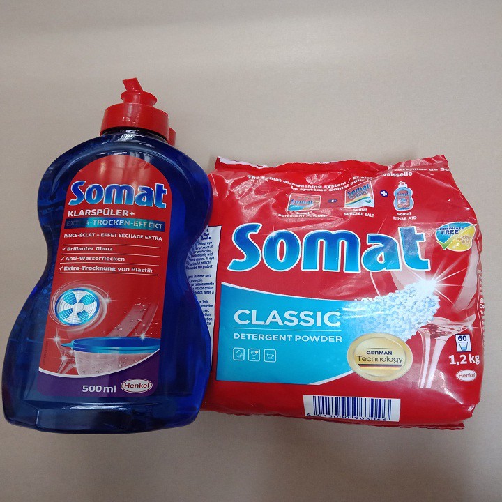 Nhà cửa & Đời sống > Dụng cụ nhà bếp > Khác || combo bột rửa bát 1,2 kg nứớc làm bóng somat 500 mlCòn hàng