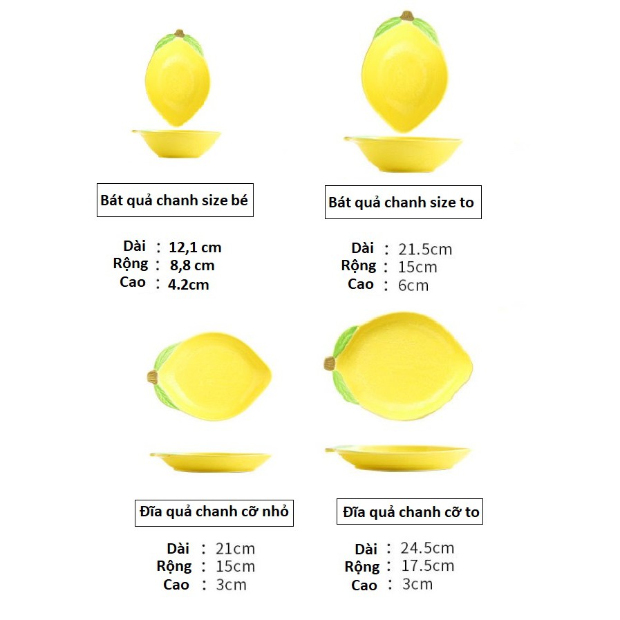 Tên Sản phẩm: Combo Cả Bộ Bát Đĩa Gốm Sứ Tráng Men Hình Quả Chanh (Gồm 4 Chi Tiết)