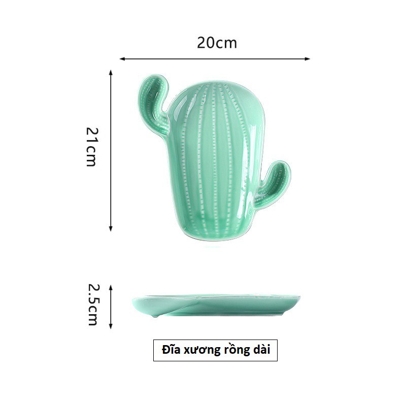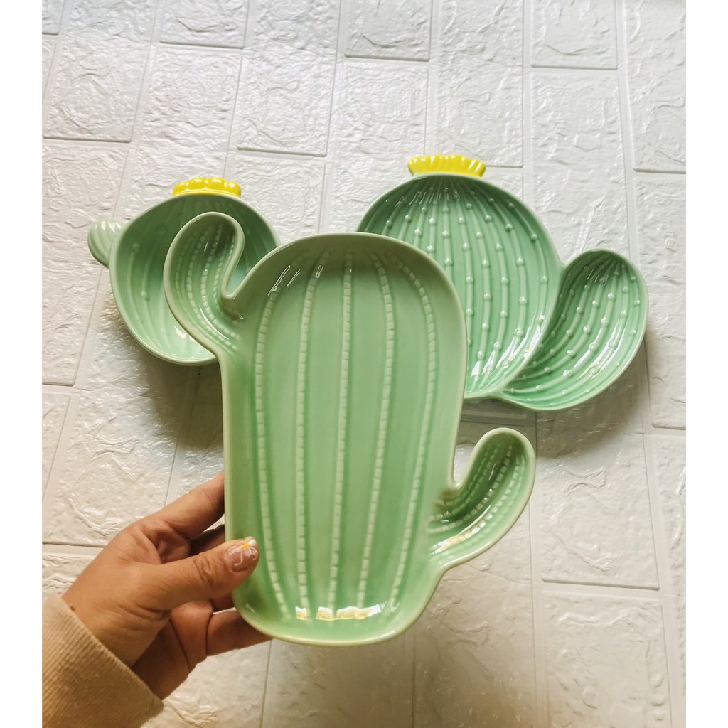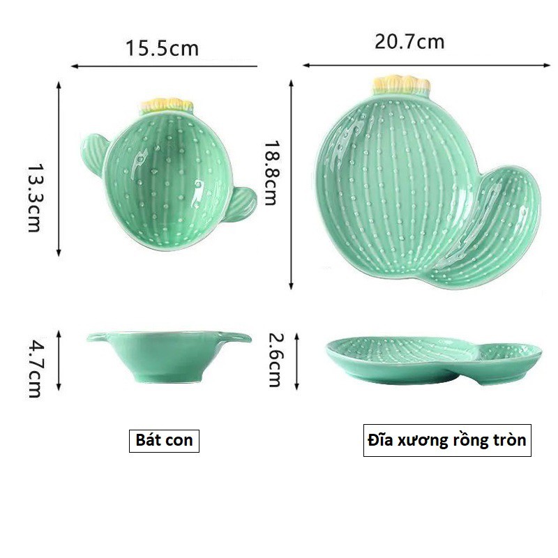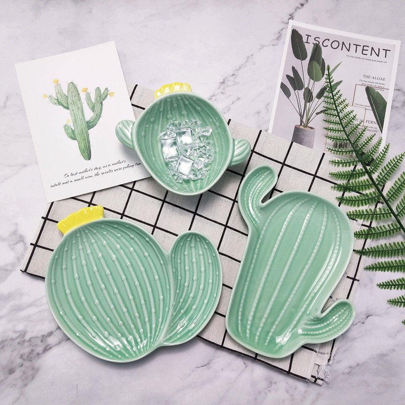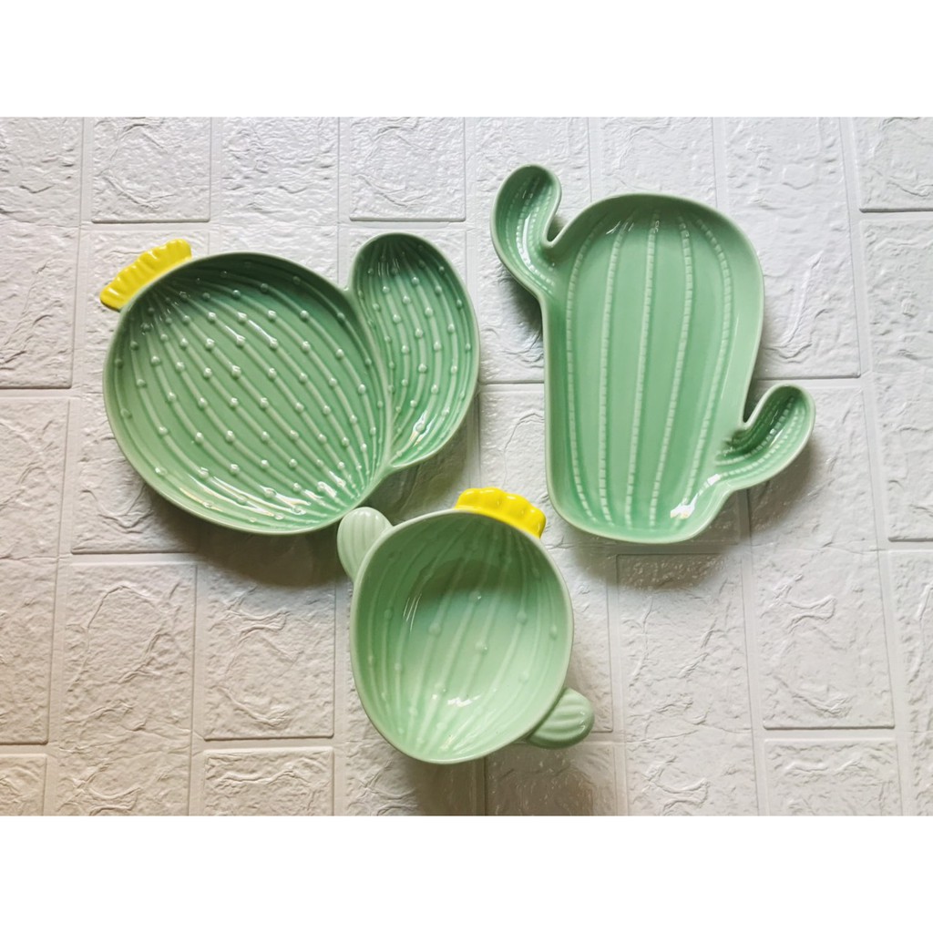 Nhà cửa & Đời sống > Bộ đồ bàn ăn > Dĩa || Combo cả bộ bát đĩa gốm sứ tráng men hình cây xương rồng gồm 3 chi tiếtCòn hàng