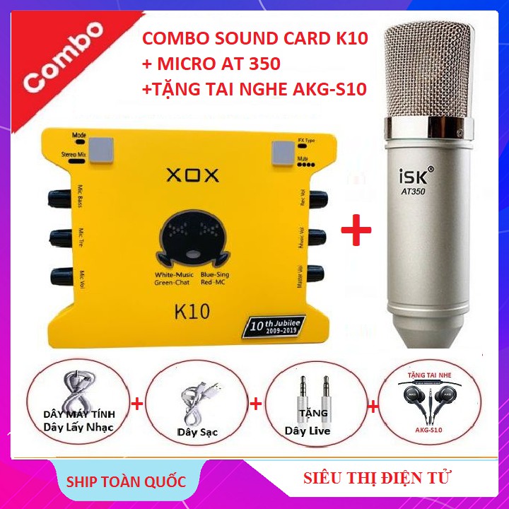 3, Shop Có bán Combo Cả Bộ Bao Gồm : Sound card XOX K10 + Micro Thu âm ISK AT 350 + Tặng Tai Nghe AKG-S10