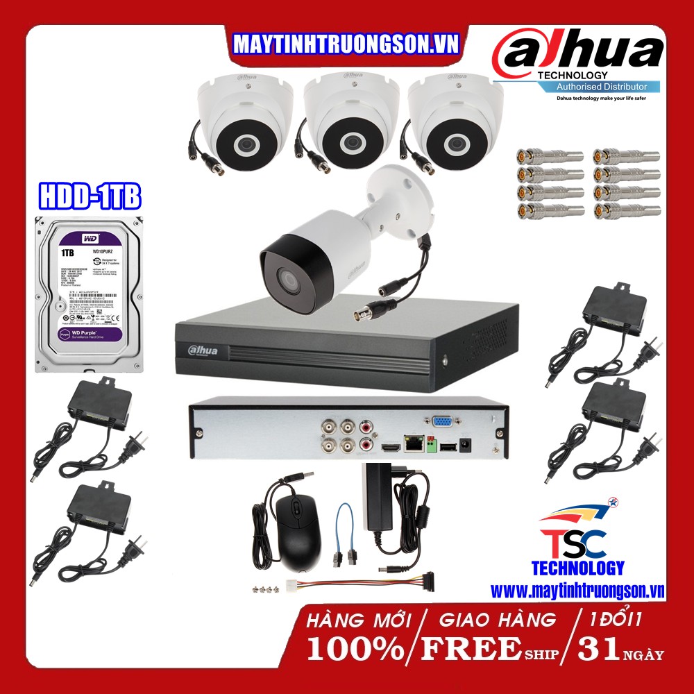 Combo Camera TSCD41T3D DAHUA 4 Mắt Cam 2M Dahua DSS | Kèm Ổ Cứng Lưu Trữ 2Tb/ 2000Gb