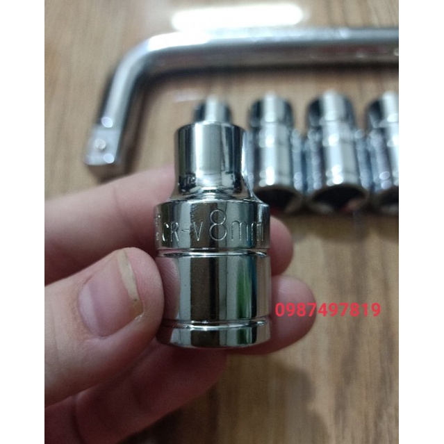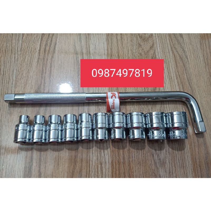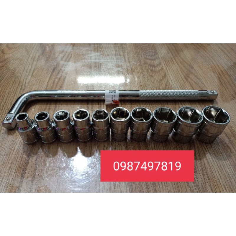 10 đầu tuýp 1/2” cỡ:8mm,10mm,12mm, 13mm, 14mm,17mm,19mm, 21mm, 22mm, 24mm