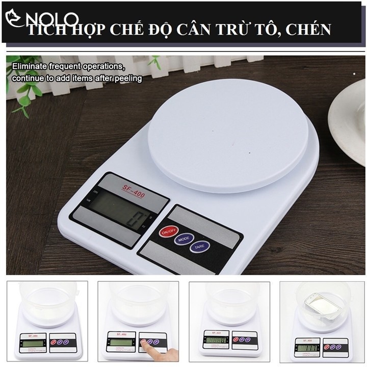 Cân còn khả nảng trừ tô, đĩa đựng bằng nút TARE trên thân máy.