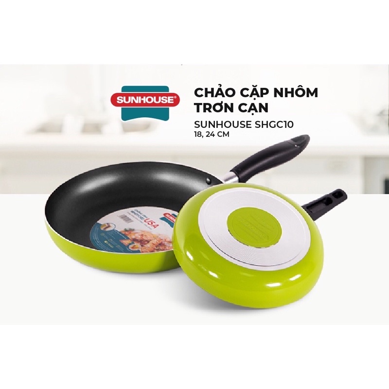 Combo Cặp Chảo Chống Dính Sunhouse Trơn Nhôm Cạn [phi 18+24]
