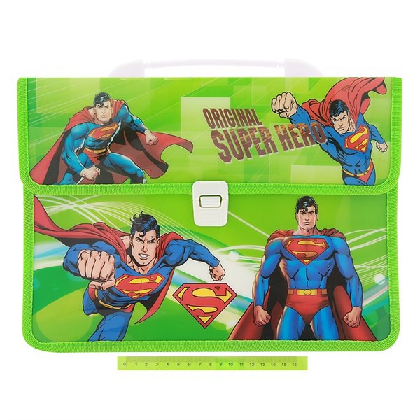 Giới thiệu Combo Cặp Học Sinh 2 Ngăn Và Thước Nhựa - Hình Superhero - Xanh Lá