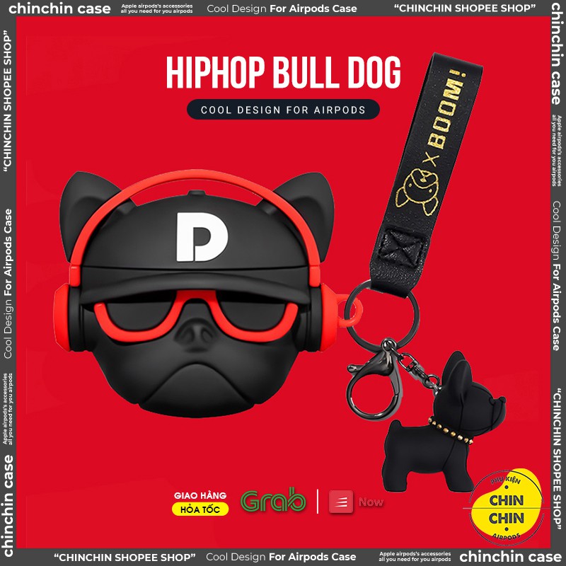Giới thiệu Combo Case Airpods 1 2 Pro Chó Bull Hip Hop Silicone Dẻo Kèm Móc Khóa Chó Bull Nhũ Vàng Cực Chất - Chinchin Case
