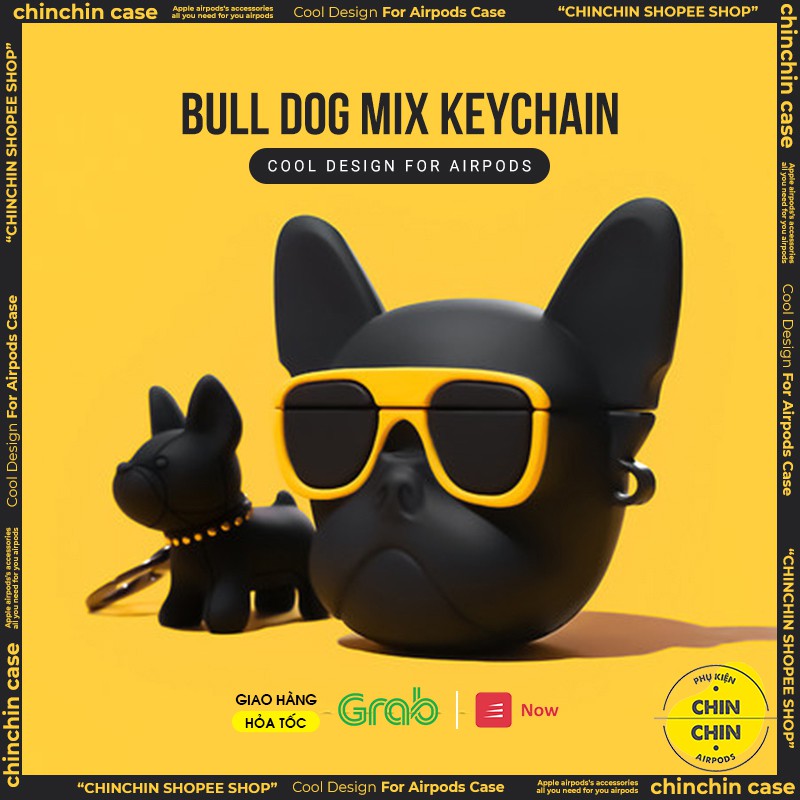 Giới thiệu Combo Case Vỏ Bọc Airpod Đựng Tai Nghe Airpods 1 2 Pro Chó Bull Kính Vàng Kèm Móc Khóa Cực Chất - Chin Chin Shop