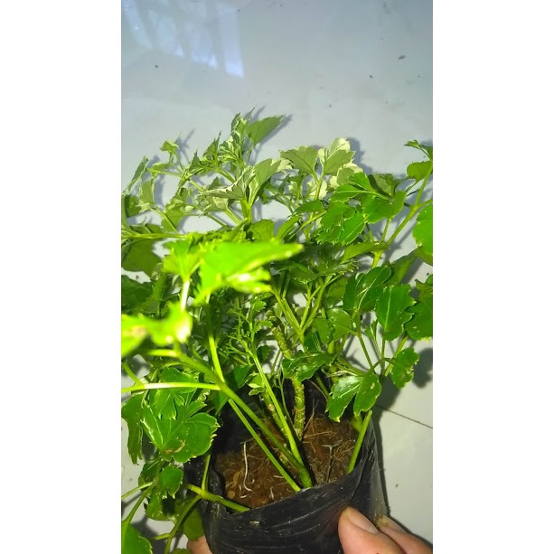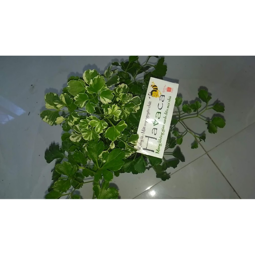 Combo 1 chậu gồm 1 đinh lăng cẩm thạch và có từ 4 đến 6 đinh lăng Thái tròn xung quanh tạo thành một khóm nhỏ cao khoảng 15cm.