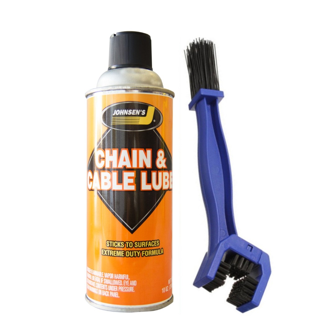 Giới thiệu sản phẩm Combo chai xịt bôi trơn, dưỡng sên Johnsen's và bàn chải vệ sinh sên 3 chiều đa năngChai xịt bảo dưỡng sên JOHNEN'S dùng để bôi trơn sên xe máy, giúp vận hành êm ái hơn, tăng độ bền của sên.