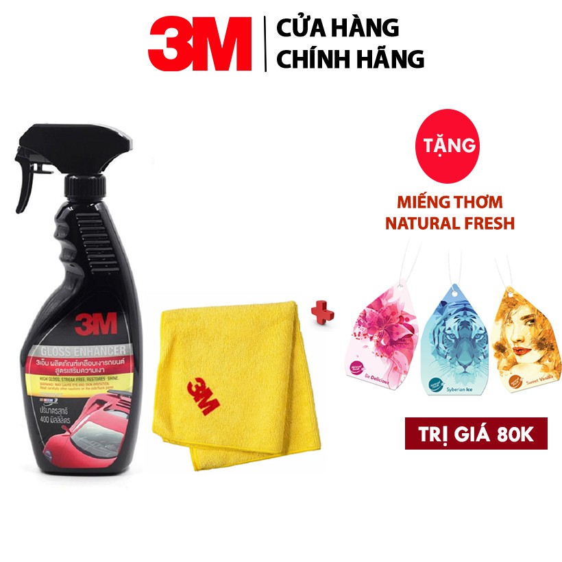 Combo Chai Xịt Tăng Độ Bóng Sơn 3M 39034 LT 400ml Và Khăn Lau Xe Chuyên Dụng 3M 32 x 36 cm - Tặng Miếng Thơm