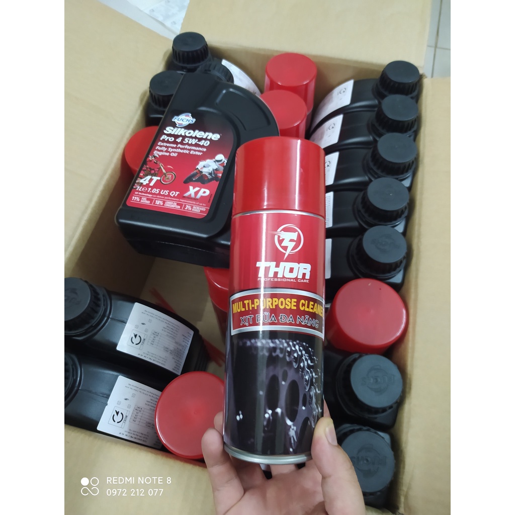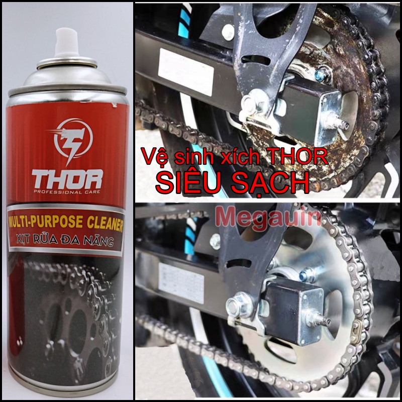 - Thor Multi-purpose Cleaner (400ml): xịt rửa xích, đánh bay chất bẩn, dầu mỡ, kết hợp cùng bàn chải cọ 3D