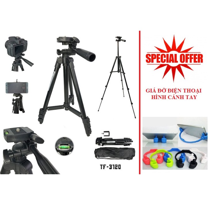 Combo chân đế chụp hình Tripod TF 3120 THẾ HỆ MỚI + Giá đỡ điện thoại hình cánh tay