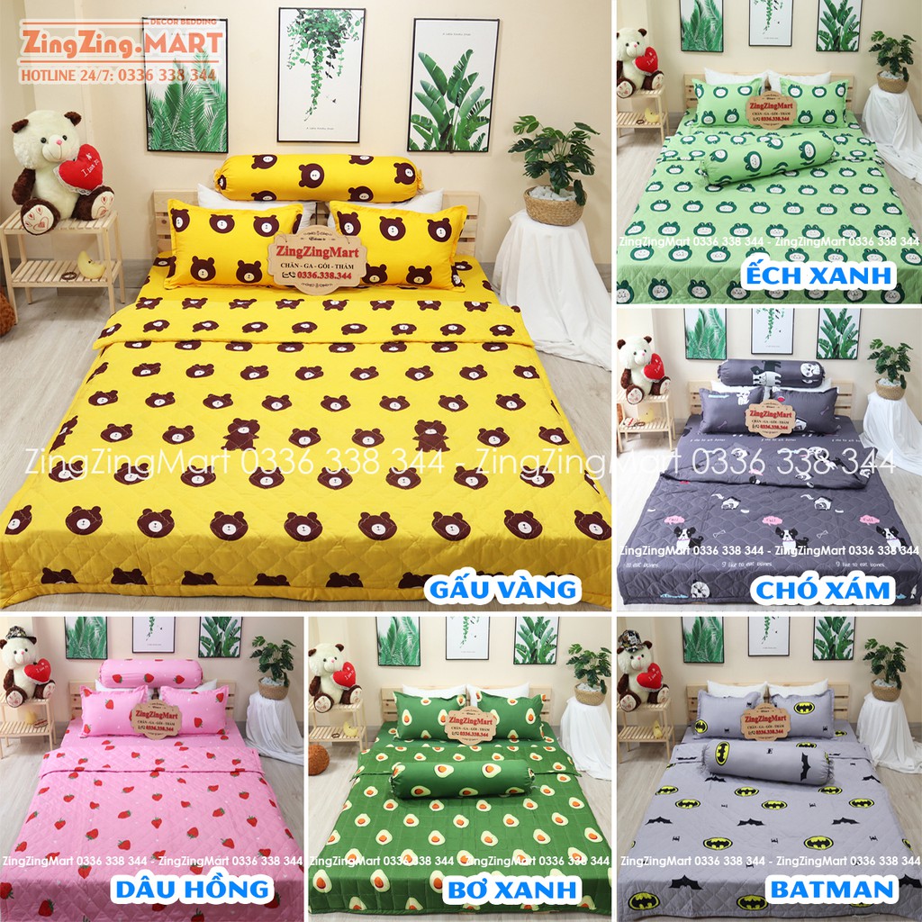 Combo chăn ga gối kèm 2 ruột gối nằm 1 ruột gối ôm (Được lựa mẫu)