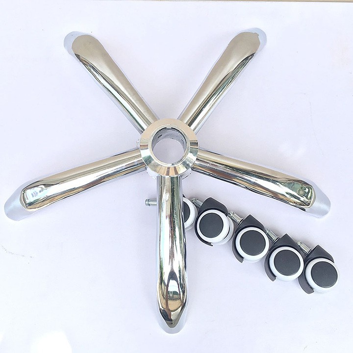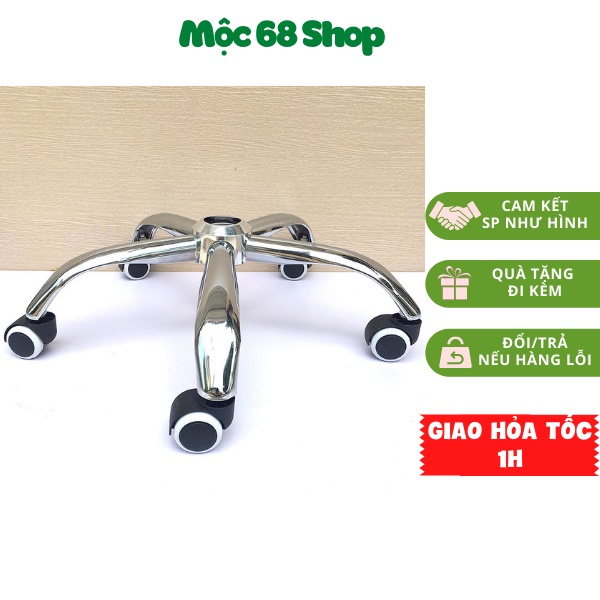 Combo chân ghế + bánh xe Là một trong những phụ kiện không thể thiếu để cấu thành một chiếc ghế xoay văn phòng.Chân ghế được làm từ thép mạ crom sáng bóng, cân bằng chắc khỏe, cấu tạo chân sao nên khả năng chịu lực rất cao