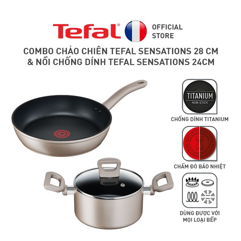 Nhà cửa & Đời sống > Dụng cụ nhà bếp > Chảo || [Mã LIFETEFAL253 giảm 12% đơn 350K] Combo Chảo chiên Tefal Sensations 28 cm & Nồi chống dính 24cmCòn hàng