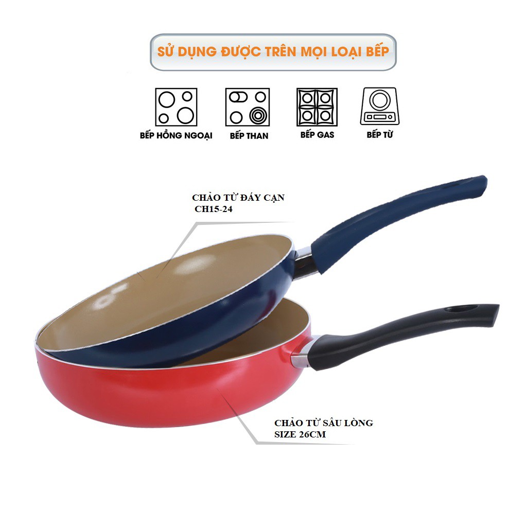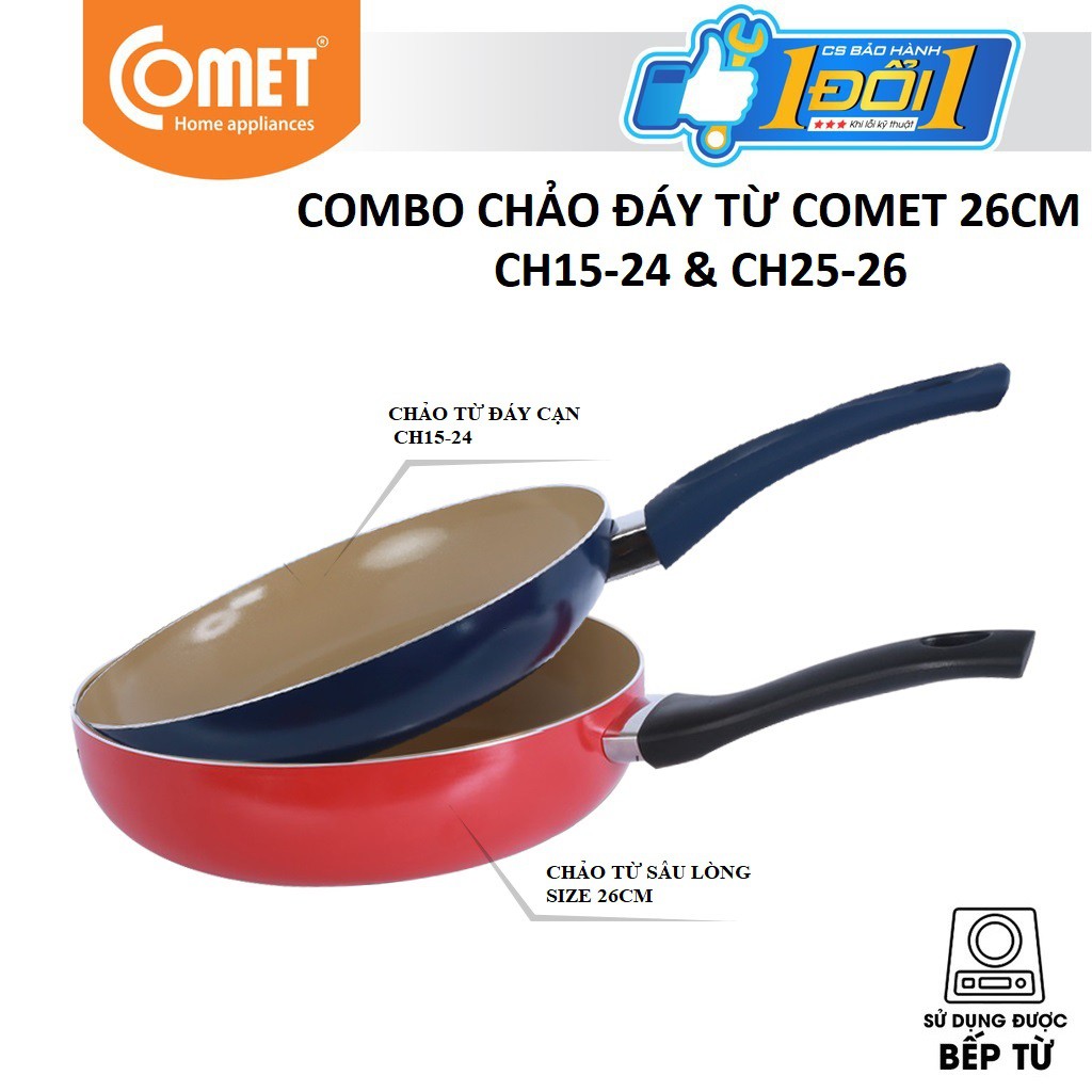 Nhà cửa & Đời sống > Dụng cụ nhà bếp > Chảo || Combo chảo chống dính Ceragold đáy từ COMET 26cm - CH15-26&CH25-26Còn hàng