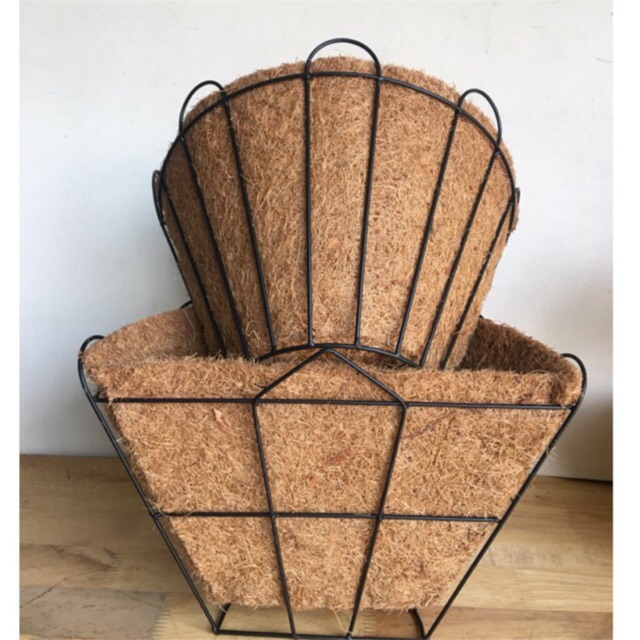 - Chậu Ốp Xơ Dừa, Chậu Treo Tường Xơ Dừa Khung Sắt.. Bên trong là lớp lót bằng chỉ xơ dừa dệt thành khuôn rất mịn giúp giữ ẩm và dinh dưỡng cho cây