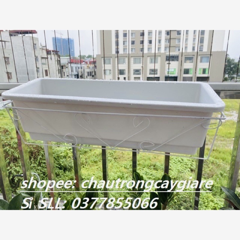 [COMBO] Chậu nhựa dài khung sắt treo ban công, hình chữ nhật trồng hoa, trồng rau tiện lợi, thông minh dài 60cm, rộng 20