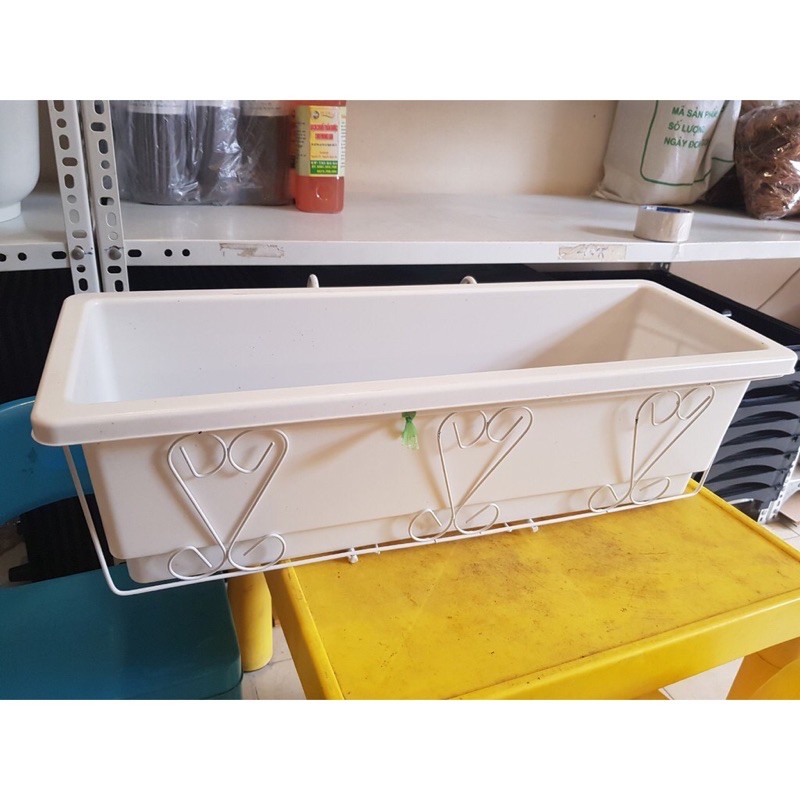 Chậu nhựa trắng, kích thước 67x24x20cmChậu thích hợp trồng cây hoa treo ban công, trồng rau