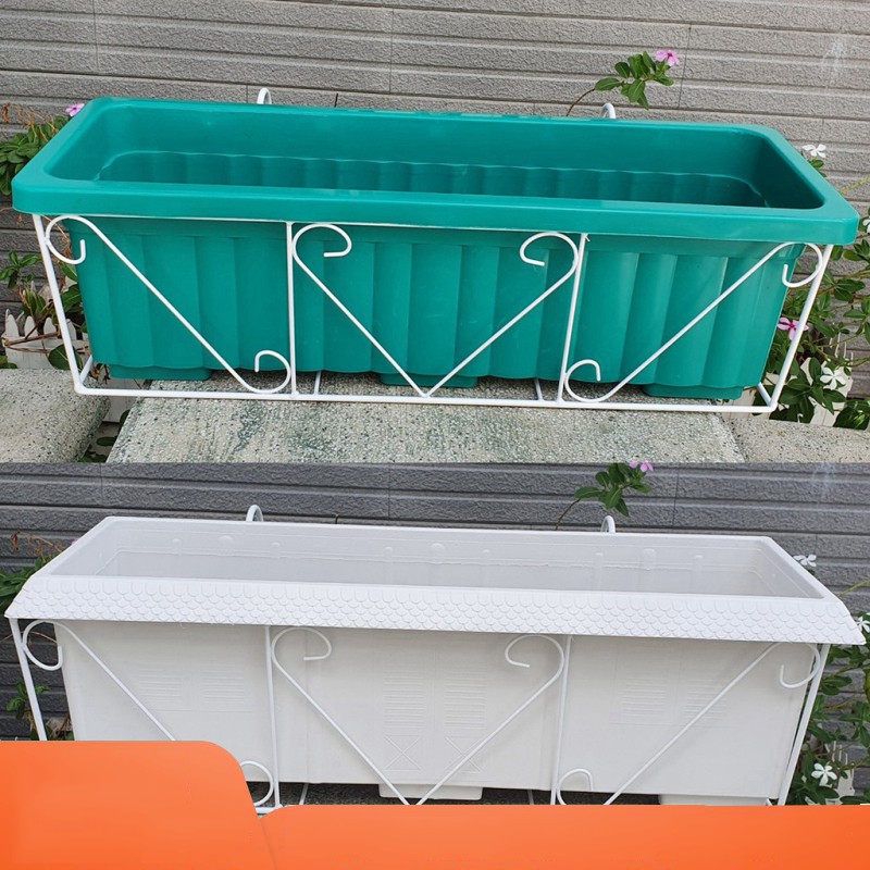 Combo Chậu Nhựa Trồng Cây Trồng Hoa và Móc Sắt Treo Ban Công dài hình chữ nhật, hình tròn dài 60cm, rộng 20cm, cao 16cm