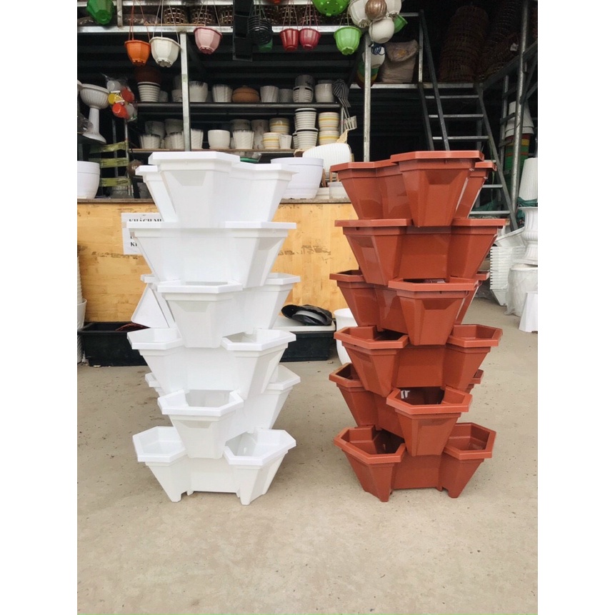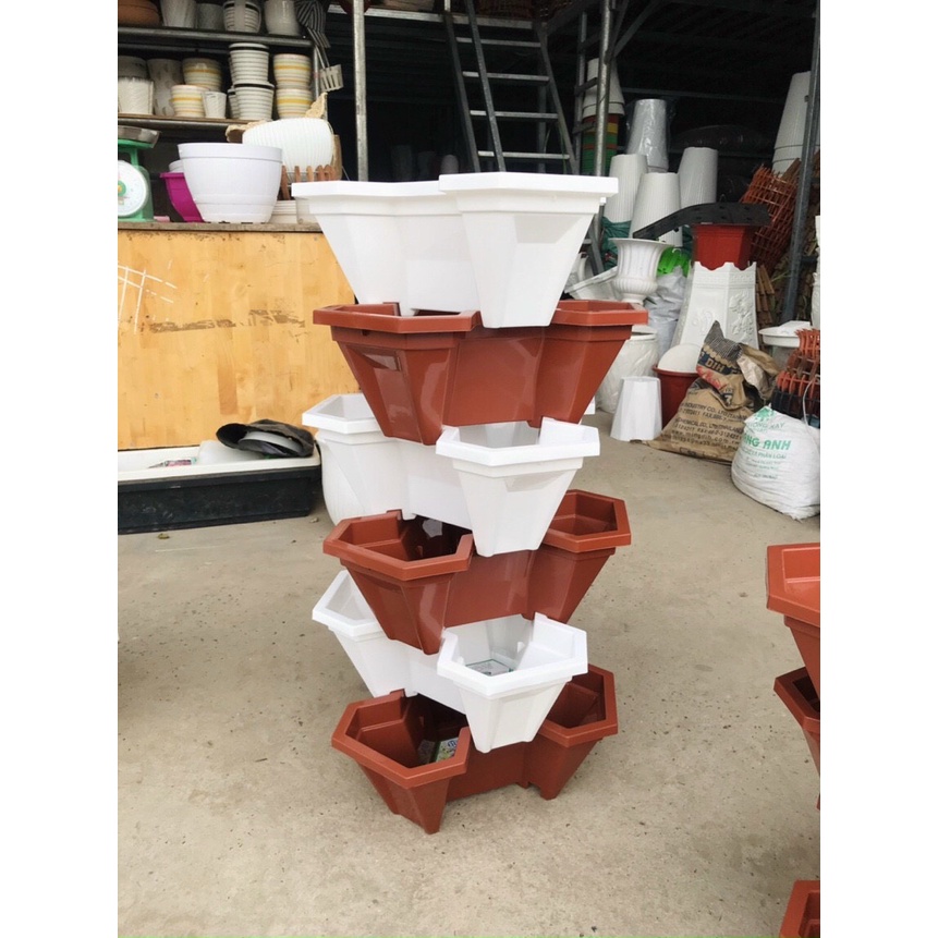 Combo chậu nhựa xếp tầng tháp trồng rau, trồng hoa cây cảnh,chậu tam giác