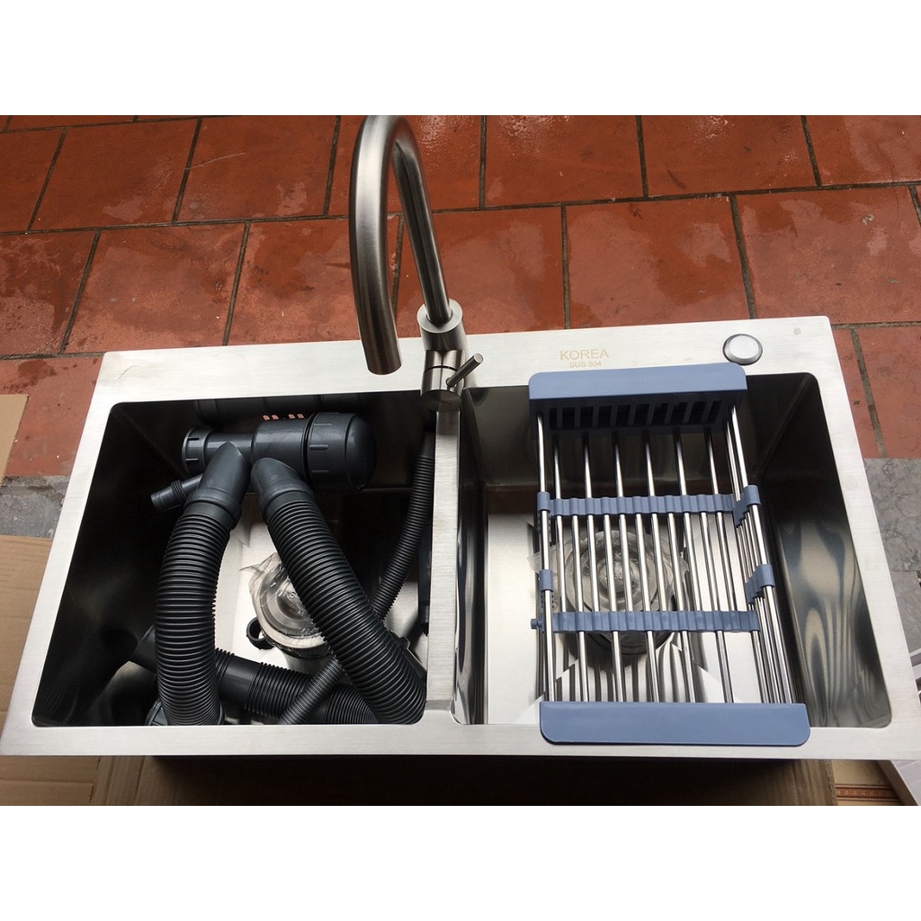 [COMBO] Chậu rửa bát đúc inox 304 KOREA cao cấp hai hố 7243, 7843, 8245 Chậu dày, chống ồn chống bắn nước