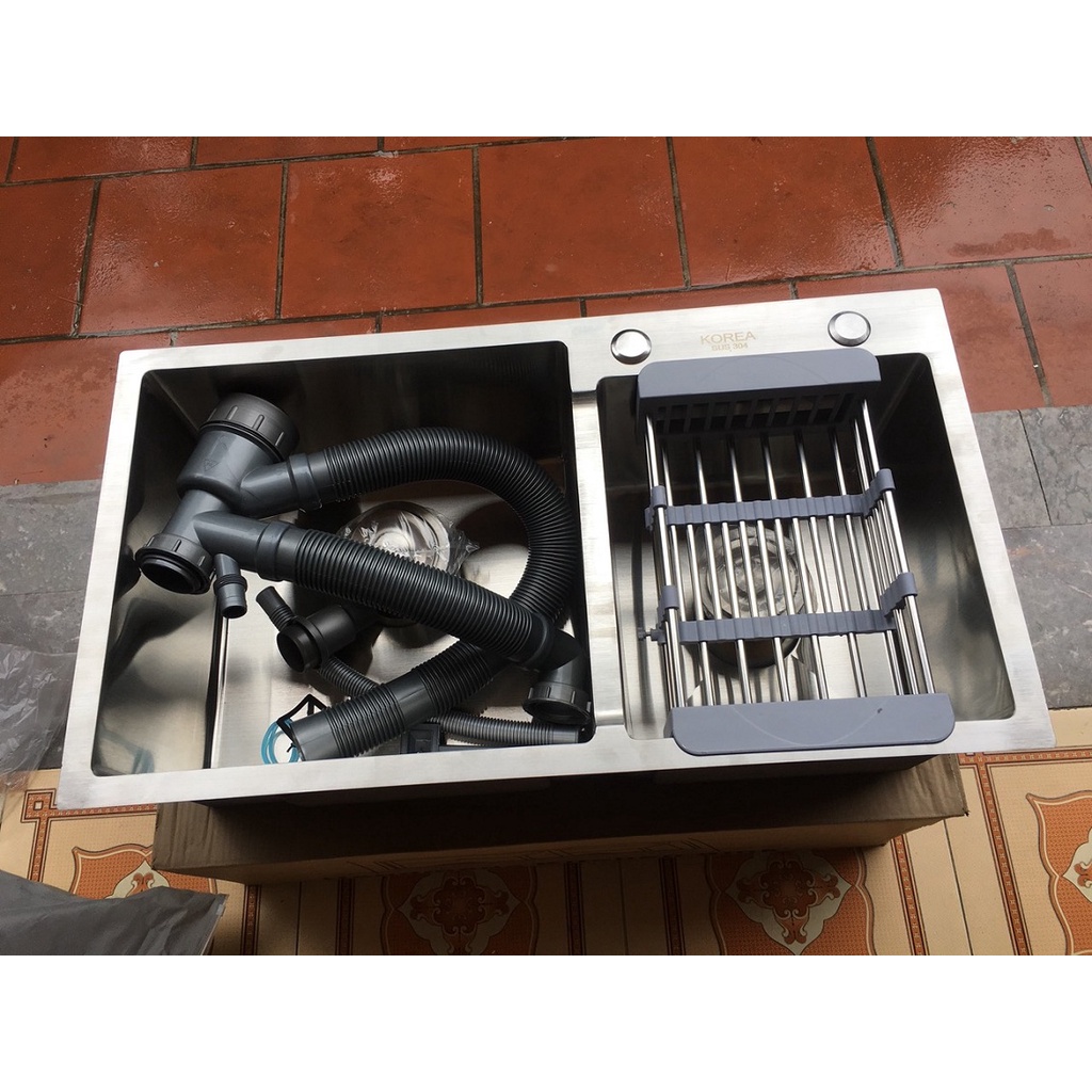 Nhà cửa & Đời sống > Dụng cụ & Thiết bị tiện ích > Chậu rửa & vòi nước || [COMBO] Chậu rửa bát đúc inox 304 KOREA cao cấp hai hố 7243, 7843, 8245 Chậu dày, chống ồn chống bắn nướcCòn hàng
